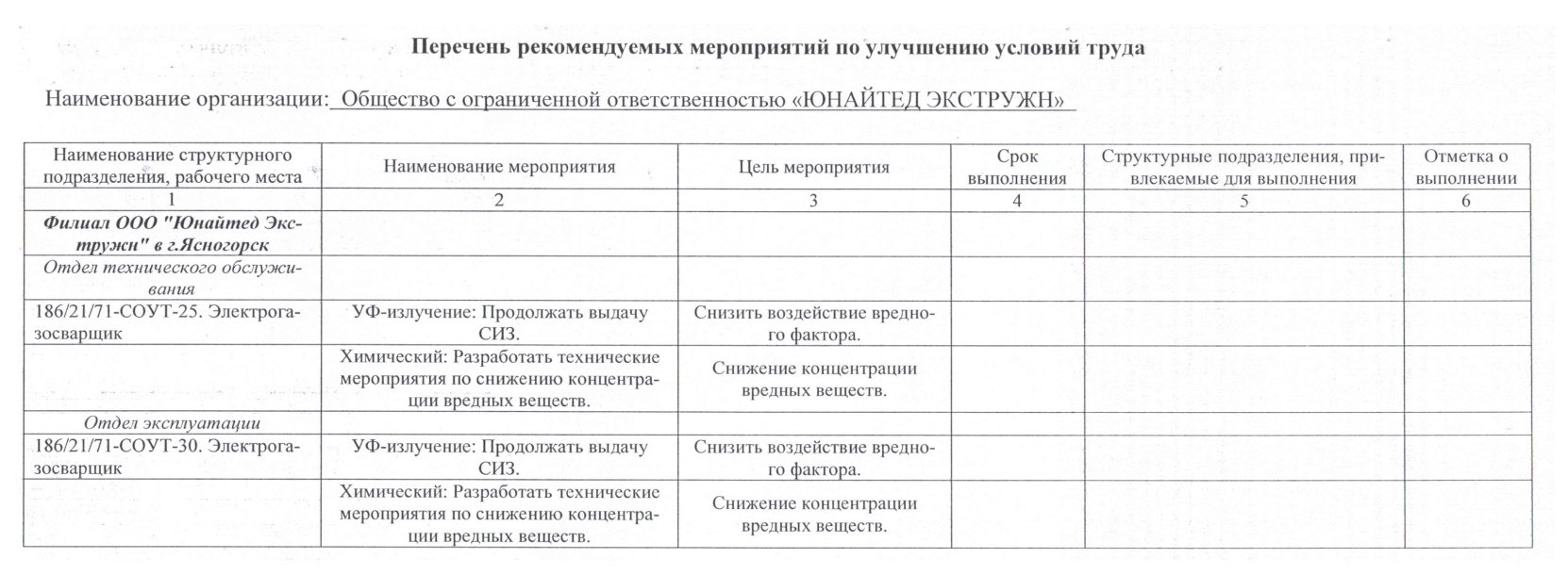 Перечень мероприятий СОУТ 2021 Сводная ведомость СОУТ 2021