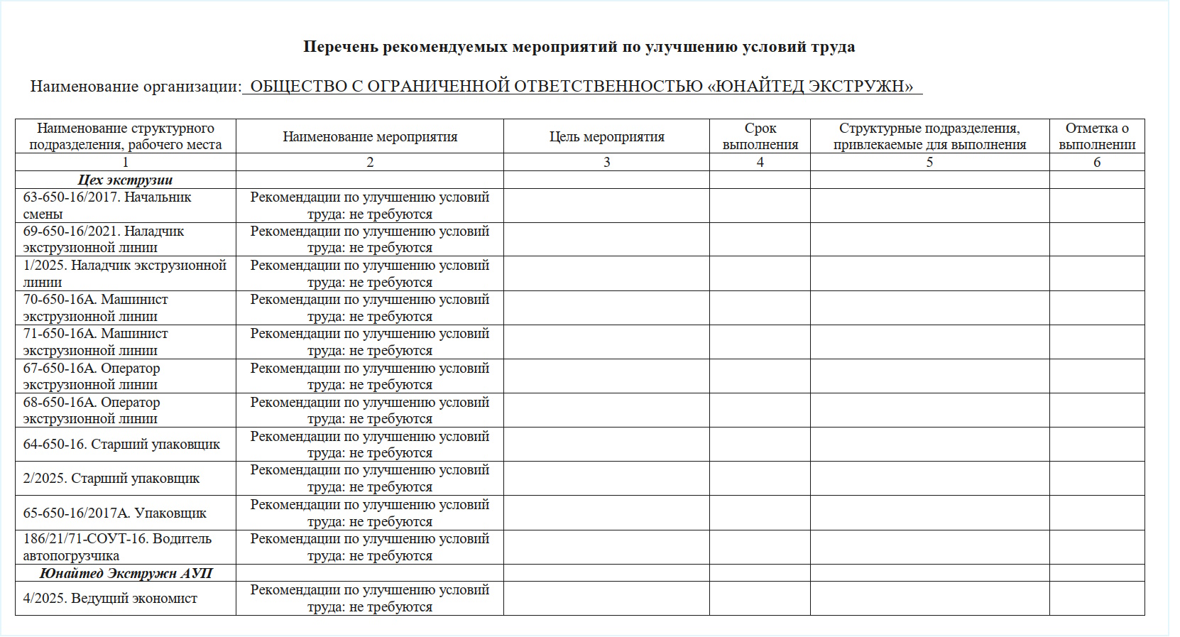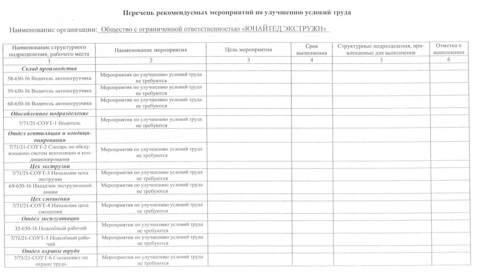 Перечень мероприятий СОУТ 2021 Сводная ведомость СОУТ 2021